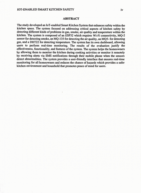 "The study developed an IoT-enabled Smart Kitchen System that enhances safety within the