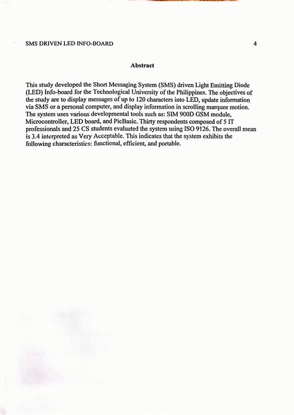 Development of SMS driven Led info-board/ Joe Marie Z. Abina, Christian Deejay B. Delos Reyes, Monina S. Dela Cruz