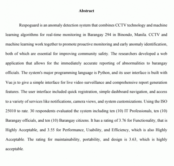 RESPOGUARD: development of an anomaly detection system for real-time surveillance in Barangay 294 Binondo, Manila using machine learning/ Justine Lawrence C. Jayoque, Marc Samuel R. Medina, Christian James Pallar, John Paul F. Pasion, and Mark Joseph Emmanuelle A. Venales