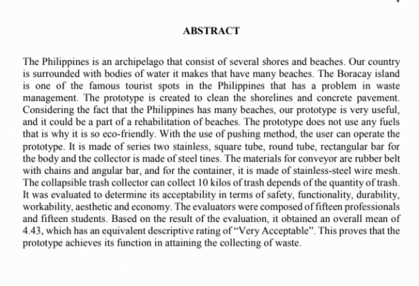 Development of collapsible trash collector/ Richmond B. Bolagao, John Harold S. Coloma, John Rick A. Delgado, Adrian Nimuel A. Lazo, and Shawn Michael T. Marayag .--