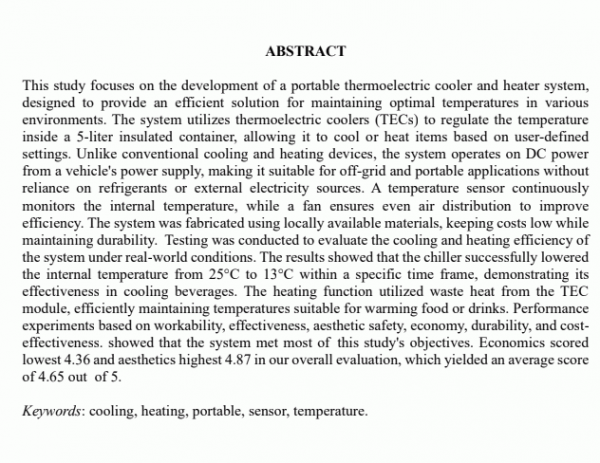 This study focuses on the development of a portable thermoelectric cooler and heater system,