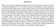 study, the particleboard was prepared using a plastic straw and polyester resin at a ratio of