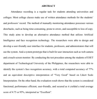 Face Recognition Attendance System for Students of Electronics Department in College of Industrial Technology of Technological University of the Philippines Ceejay B. De Castro, Nick Jade B. Pacun, Russel D. Pagatpatan, Erwin Sabas and Joshua Daniel D. Villarosa.--