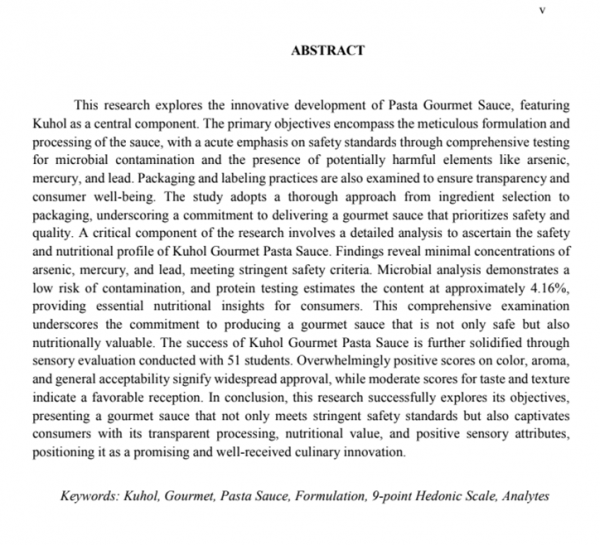 Keywords: Kuhol, Gourmet, Pasta Sauce, Formulation, 9-point Hedonic Scale, Analytes