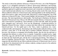 Keywords: Authentic Delicacy, Culinary Tradition, Food Preserving, Flavors, Quezon