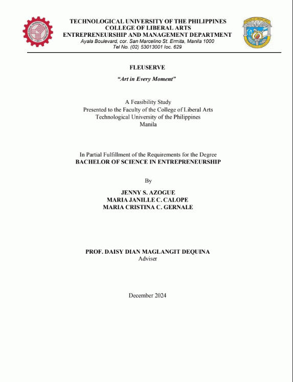 Fleuserve : “art in every moment” / Jenny S. Azogue, Maria Janille C. Calope, Maria Cristina C. Gernale.