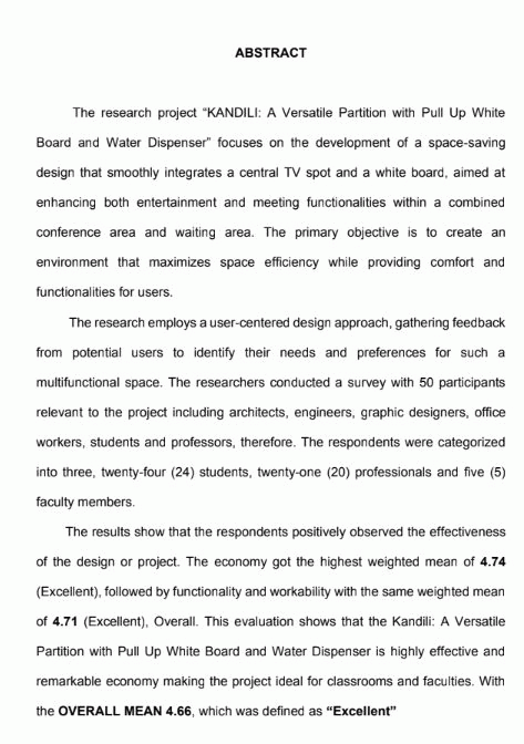 Kandili: a versatile partition with pull-up whiteboard and water dispenser/ Jamby O. Bunag, Abdul Azis B. Cosain, Abegail M. Legaspi, Angel R. Madlangbayan, and Jamima M. Trijo.--