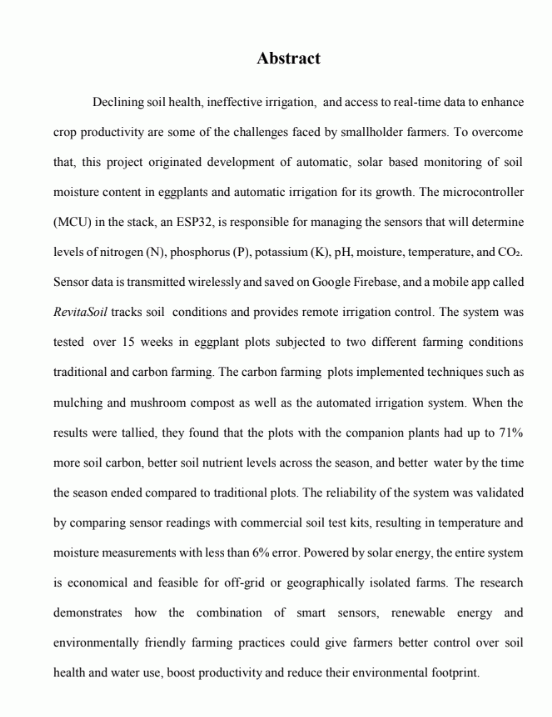 that, this project originated development of automatic, solar based monitoring of soil