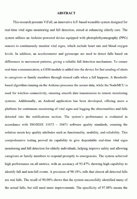 Vifall: real-time vital signs monitoring, fall detection, and notification systems using iot-based wearabale technology for elderly care: Camille Tracy T. Taberna, Aljhun M. Abella, Justine Mae B. De Guzman, Rowell Mayabason, Evita Joyce B. Ngo, and Matthew Aaron A. Pagente.--