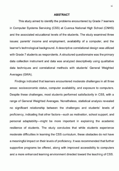 Challenges in computer systems servicing (css) to proficiency level of grade 7 learners in cuenca national high school/ Christine Joy A. Bruel, Dannah Lou H. Casil, and Justine S. Sones.--